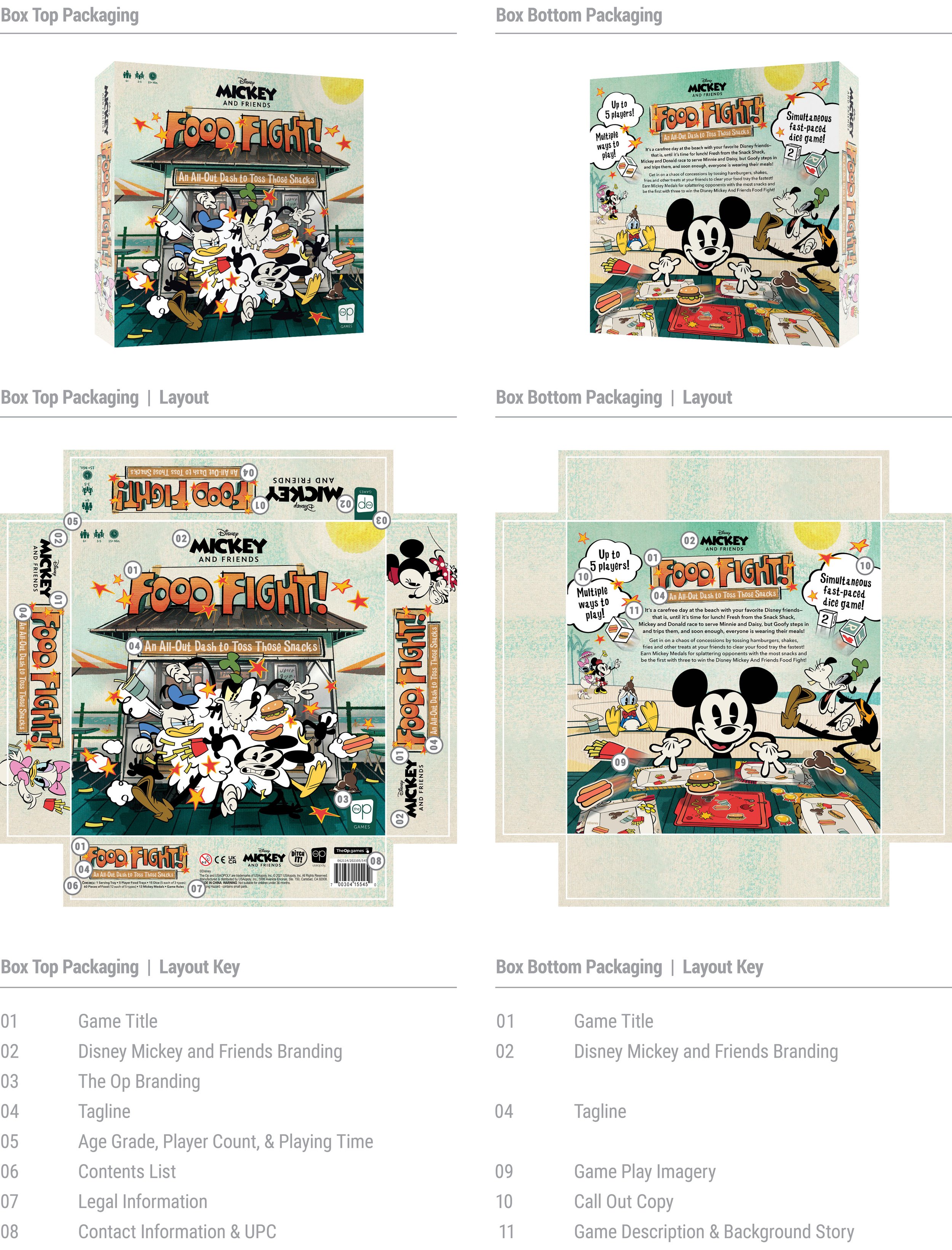 A short teaser was created for Mickey and Friends Food Fight to promote online and through social media. Motion graphics have a similar look and feel as the game, introduce the background story, briefly explain game play, and end with a components preview and call to action.